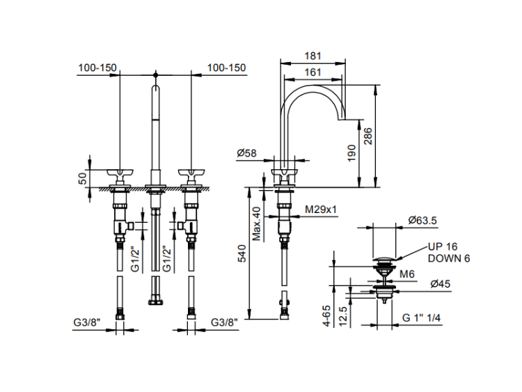 Смеситель для раковины, Fantini, Icona Classic, тип открывания воды-двухвентильный, тип регулирования воды-керамический картридж, отверстия для монтажа-3, высота, мм-286, вынос излива, мм-161, донный клапан-есть, цвет-хром Смеситель для раковины, Fantini, Icona Classic, цвет-хром