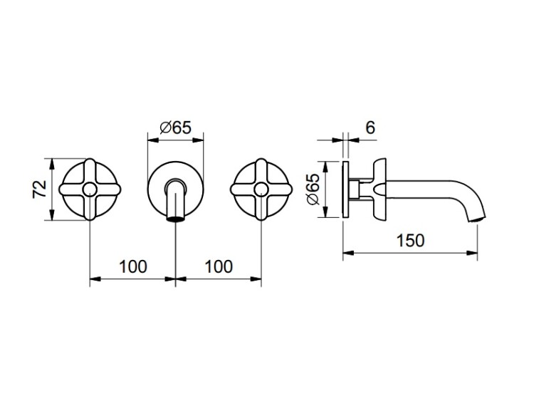 Смеситель для раковины, Fantini, Icona Classic, тип открывания воды-двухвентильный, тип регулирования воды-керамический картридж, тип установки-настенный, отверстия для монтажа-3, вынос излива, мм-150, стандарт подвода воды-1/2", внутренняя часть-необходимо заказать, цвет-хром, в комплекте-ручки Смеситель для раковины, Fantini, Icona Classic, цвет-хром