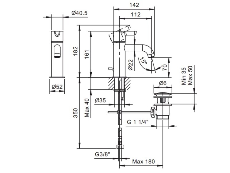Смеситель для раковины, Fantini, Icona Classic, тип открывания воды-однорычажный, тип регулирования воды-традиционный картридж, отверстия для монтажа-1, высота, мм-161, вынос излива, мм-112, донный клапан-есть, стандарт подвода воды-3/8", цвет-хром, ручка-в комплекте Смеситель для раковины, Fantini, Icona Classic, цвет-хром