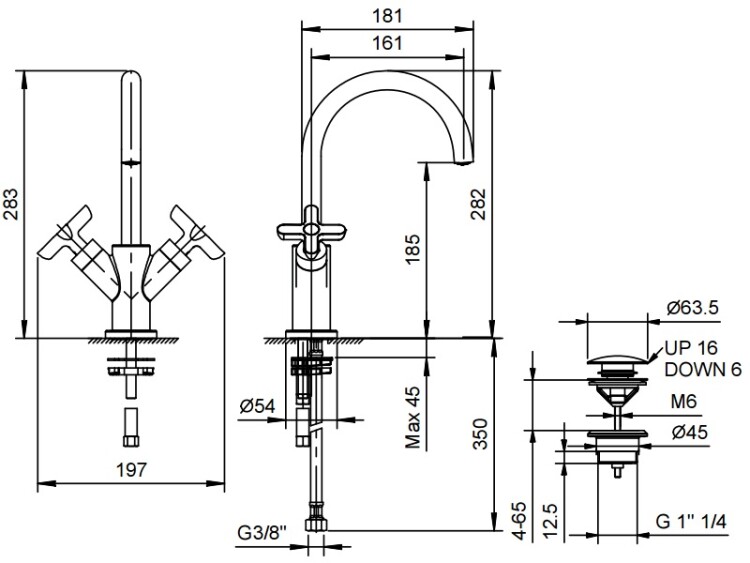 Смеситель для раковины, Fantini, Icona Classic, тип открывания воды-двухвентильный, тип регулирования воды-керамический картридж, отверстия для монтажа-1, высота, мм-283, вынос излива, мм-160, донный клапан-есть, нажимного типа, стандарт подвода воды-3/8", цвет-Matt British Gold PVD, в комплекте-ручки Смеситель для раковины, Fantini, Icona Classic, цвет-Matt British Gold PVD