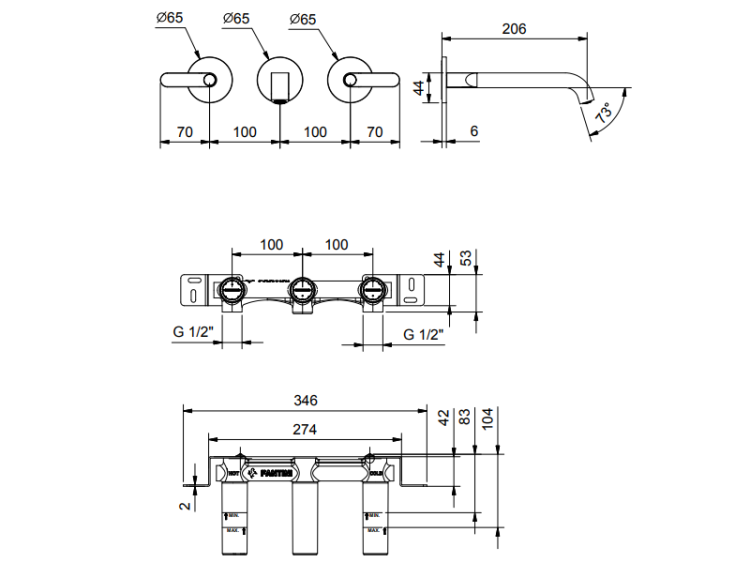 Смеситель для раковины, Fantini, Icona Deco, тип открывания воды-двухрычажный, тип регулирования воды-керамический картридж, тип установки-настенный, отверстия для монтажа-3, вынос излива, мм-200, внутренняя часть-необходимо заказать, цвет-хром Смеситель для раковины, Fantini, Icona Deco, цвет-хром