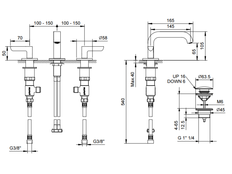 Смеситель для раковины, Fantini, Icona Deco, тип открывания воды-двухрычажный, тип регулирования воды-керамический картридж, тип установки-на борт раковины, отверстия для монтажа-3, высота, мм-105, вынос излива, мм-145, донный клапан-есть, цвет-хром Смеситель для раковины, Fantini, Icona Deco, цвет-хром