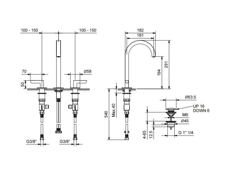 Смеситель для раковины, Fantini, Icona Deco, тип открывания воды-двухрычажный, тип регулирования воды-керамический картридж, отверстия для монтажа-3, высота, мм-291, вынос излива, мм-160, донный клапан-есть, цвет-Matt Gun Metal PVD Смеситель для раковины, Fantini, Icona Deco, цвет-Matt Gun Metal PVD