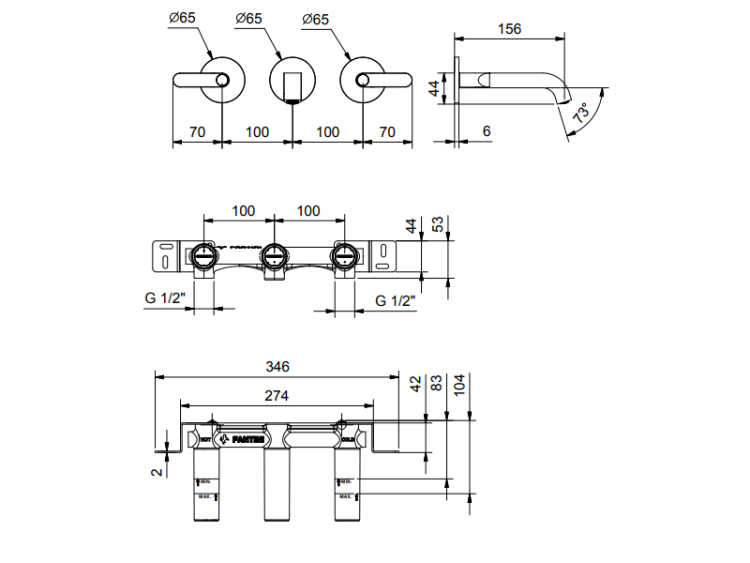 Смеситель для раковины, Fantini, Icona Deco, тип открывания воды-двухрычажный, тип регулирования воды-керамический картридж, тип установки-встраиваемый, отверстия для монтажа-3, высота, мм-65, вынос излива, мм-150, внутренняя часть-необходимо заказать, цвет-Nickel PVD Смеситель для раковины, Fantini, Icona Deco, цвет-Nickel PVD
