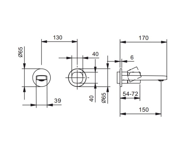 Смеситель для раковины, Fantini, Lame, тип открывания воды-одновентильный, тип регулирования воды-традиционный картридж, тип установки-настенный, отверстия для монтажа-2, вынос излива, мм-150, стандарт подвода воды-1/2", внутренняя часть-необходимо заказать, цвет-черный матовый, в комплекте-ручка Смеситель для раковины, Fantini, Lame, цвет-черный матовый