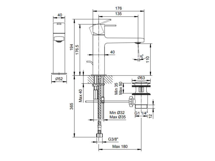 Смеситель для раковины, Fantini, Lame, тип открывания воды-однорычажный, отверстия для монтажа-1, высота, мм-177, вынос излива, мм-135, донный клапан-есть, цвет-хром Смеситель для раковины, Fantini, Lame, цвет-хром