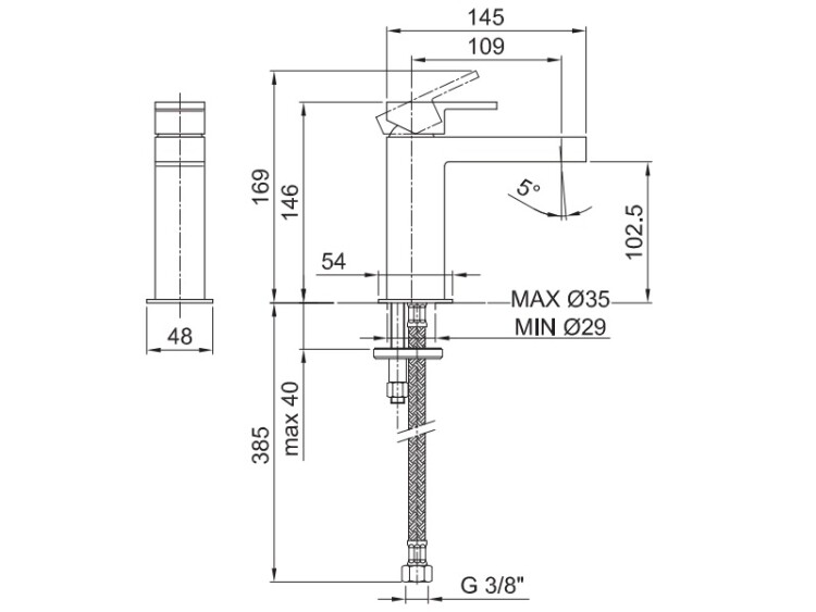 Смеситель для раковины, Fantini, Mare, тип открывания воды-однорычажный, тип регулирования воды-традиционный картридж, отверстия для монтажа-1, высота, мм-146, вынос излива, мм-111, тип подводки-гибкая, стандарт подвода воды-3/8", цвет-черный матовый, ручка-в комплекте Смеситель для раковины, Fantini, Mare, цвет-черный матовый