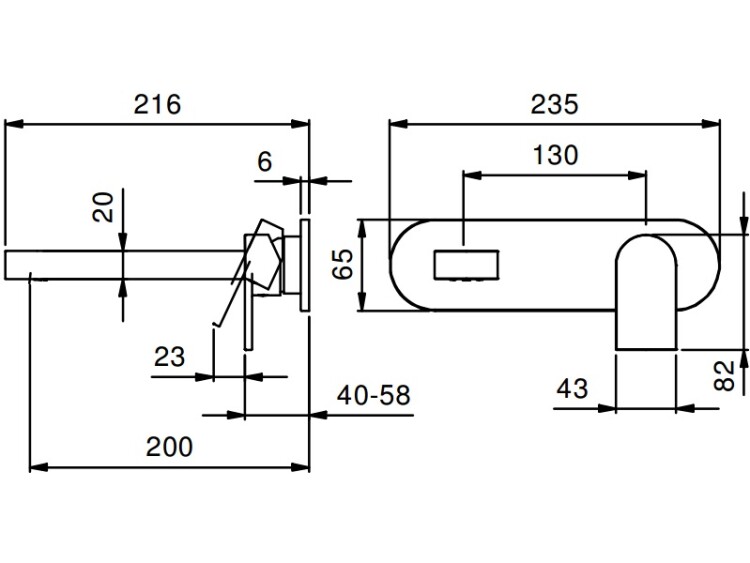 Смеситель для раковины, Fantini, Mare, тип открывания воды-однорычажный, тип регулирования воды-традиционный картридж, тип установки-встраиваемый в стену, отверстия для монтажа-2, вынос излива, мм-200, стандарт подвода воды-1/2", внутренняя часть-необходимо заказать, цвет-хром, ручка-в комплекте Смеситель для раковины, Fantini, Mare, цвет-хром