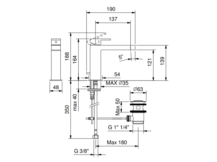 Смеситель для раковины, Fantini, Mare, тип открывания воды-однорычажный, отверстия для монтажа-1, высота, мм-164, вынос излива, мм-140, донный клапан-есть, цвет-хром Смеситель для раковины, Fantini, Mare, цвет-хром