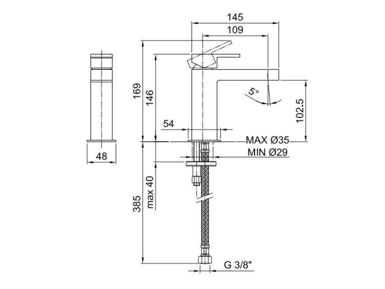 Смеситель для раковины, Fantini, Mare, тип открывания воды-однорычажный, отверстия для монтажа-1, высота, мм-169, вынос излива, мм-145, тип подводки-гибкая, цвет-хром Смеситель для раковины, Fantini, Mare, цвет-хром