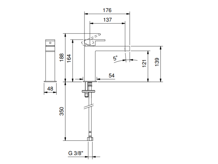 Смеситель для раковины, Fantini, Mare, тип открывания воды-однорычажный, отверстия для монтажа-1, высота, мм-164, вынос излива, мм-140, стандарт подвода воды-3/8", цвет-хром глянцевый, ручка-в комплекте Смеситель для раковины, Fantini, Mare, цвет-хром глянцевый
