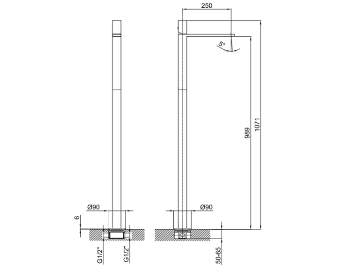 Смеситель для раковины, Fantini, Milano, тип установки-напольный, высота, мм-1071, вынос излива, мм-250, цвет-хром Смеситель для раковины, Fantini, Milano, цвет-хром