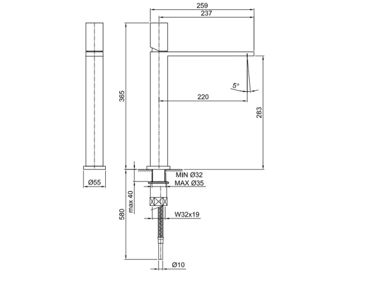 Смеситель для раковины, Fantini, Milano, тип открывания воды-однорычажный, отверстия для монтажа-1, высота, мм-365, вынос излива, мм-220, цвет-хром Смеситель для раковины, Fantini, Milano, цвет-хром