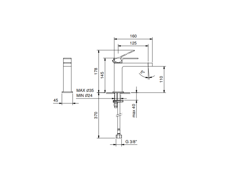 Смеситель для раковины, Fantini, Mint, тип открывания воды-однорычажный, тип регулирования воды-традиционный картридж, отверстия для монтажа-1, высота, мм-178, вынос излива, мм-160, цвет-хром Смеситель для раковины, Fantini, Mint, цвет-хром