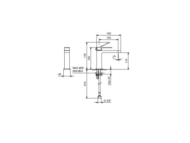 Смеситель для раковины, Fantini, Mint, тип открывания воды-однорычажный, отверстия для монтажа-1, высота, мм-125, вынос излива, мм-125, тип излива-178, цвет-матовая натуральная сталь Смеситель для раковины, Fantini, Mint, цвет-матовая натуральная сталь