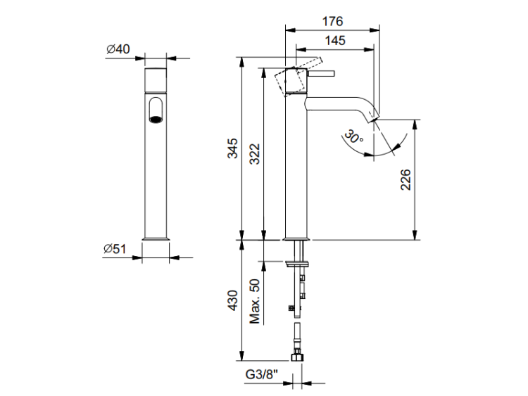 Смеситель для раковины, Fantini, Nostromo, тип открывания воды-однорычажный, отверстия для монтажа-1, высота, мм-345, вынос излива, мм-145, цвет-белый матовый Смеситель для раковины, Fantini, Nostromo, цвет-белый матовый