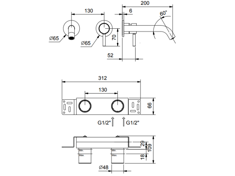 Смеситель для раковины, Fantini, Nostromo, тип открывания воды-однорычажный, тип установки-настенный, отверстия для монтажа-2, вынос излива, мм-200, цвет-черный матовый Смеситель для раковины, Fantini, Nostromo, цвет-черный матовый