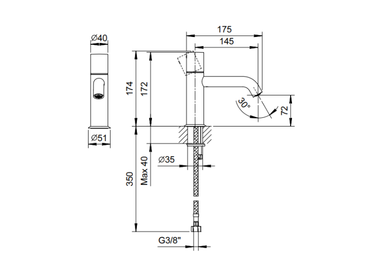 Смеситель для раковины, Fantini, Nostromo, тип установки-на раковину, отверстия для монтажа-1, высота, мм-172, вынос излива, мм-145, цвет-черный матовый Смеситель для раковины, Fantini, Nostromo, цвет-черный матовый