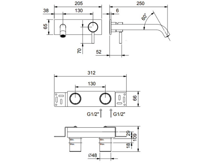 Смеситель для раковины, Fantini, Nostromo, тип открывания воды-однорычажный, тип установки-встраиваемый, вынос излива, мм-250, внутренняя часть-необходимо заказать, цвет-черный матовый Смеситель для раковины, Fantini, Nostromo, цвет-черный матовый