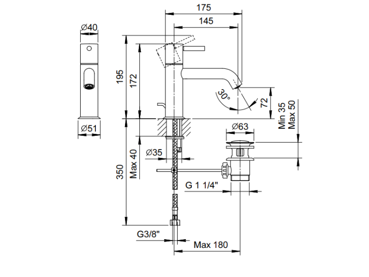 Смеситель для раковины, Fantini, Nostromo, тип открывания воды-однорычажный, тип установки-на раковину, отверстия для монтажа-1, высота, мм-195, вынос излива, мм-145, донный клапан-есть, цвет-черный матовый Смеситель для раковины, Fantini, Nostromo, цвет-черный матовый