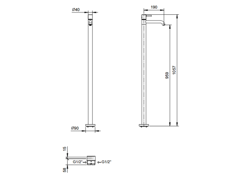 Смеситель для раковины, Fantini, Nostromo, тип установки-напольный, отверстия для монтажа-1, высота, мм-1057, вынос излива, мм-146, внутренняя часть-необходимо заказать, цвет-хром Смеситель для раковины, Fantini, Nostromo, цвет-хром