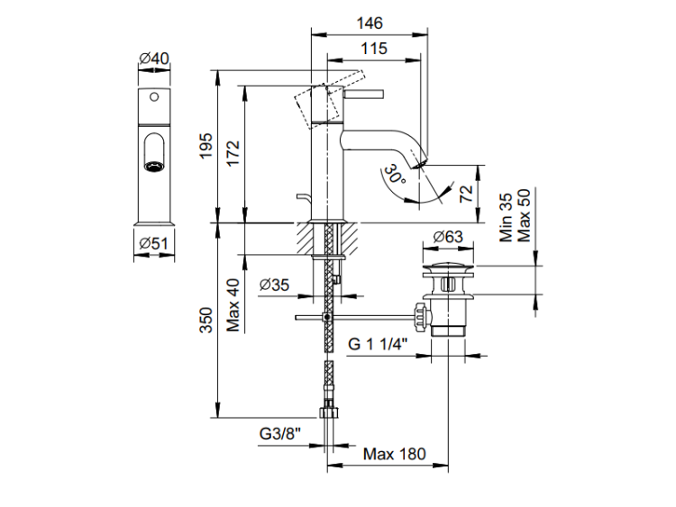 Смеситель для раковины, Fantini, Nostromo, тип открывания воды-однорычажный, отверстия для монтажа-1, высота, мм-195, вынос излива, мм-146, донный клапан-есть, цвет-хром Смеситель для раковины, Fantini, Nostromo, цвет-хром