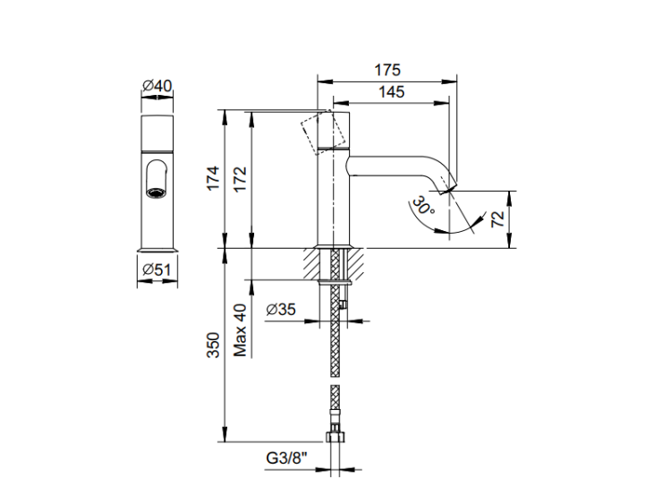 Смеситель для раковины, Fantini, Nostromo, отверстия для монтажа-1, высота, мм-172, вынос излива, мм-145, цвет-матовая натуральная сталь Смеситель для раковины, Fantini, Nostromo, цвет-матовая натуральная сталь