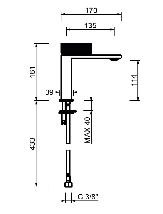 Смеситель для раковины, Fantini, O-XY, тип открывания воды-однорычажный, тип регулирования воды-керамический картридж, монтаж-на раковину/столешницу, отверстия для монтажа-1, высота, мм-161, вынос излива, мм-135, тип излива-неподвижный, донный клапан-отсутствует, тип подводки-гибкая, стандарт подвода воды-3/8", цвет-Polished Nickel PVD Смеситель для раковины, Fantini, O-XY, цвет-Polished Nickel PVD