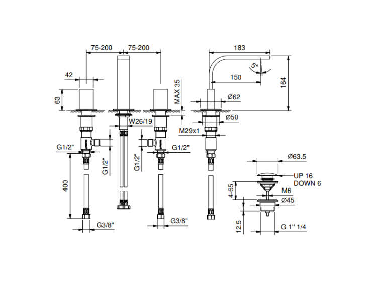 Смеситель для раковины, Fantini, Venezia, тип регулирования воды-керамический картридж, отверстия для монтажа-3, высота, мм-164, вынос излива, мм-150, донный клапан-есть нажимного типа, цвет-Nickel PVD Смеситель для раковины, Fantini, Venezia, цвет-Nickel PVD