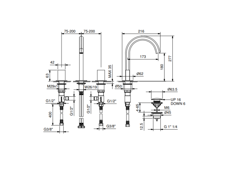 Смеситель для раковины, Fantini, Venezia, тип открывания воды-двухвентильный, тип регулирования воды-керамический картридж, отверстия для монтажа-3, высота, мм-277, вынос излива, мм-173, донный клапан-есть, цвет-Nickel PVD, без ручек Смеситель для раковины, Fantini, Venezia, цвет-Nickel PVD