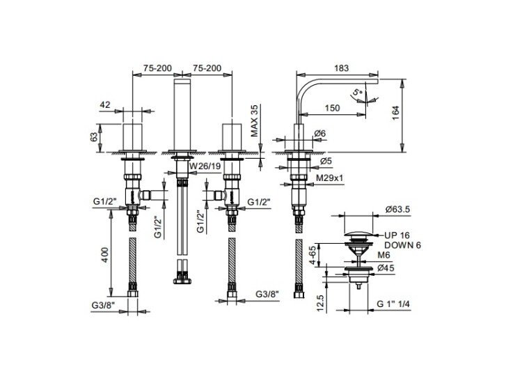Смеситель для раковины, Fantini, Venezia, тип открывания воды-двухвентильный, тип регулирования воды-керамический картридж, отверстия для монтажа-3, высота, мм-164, вынос излива, мм-150, донный клапан-есть, нажимного типа, цвет-золото плюс, ручки заказываются отдельно Смеситель для раковины, Fantini, Venezia, цвет-золото плюс