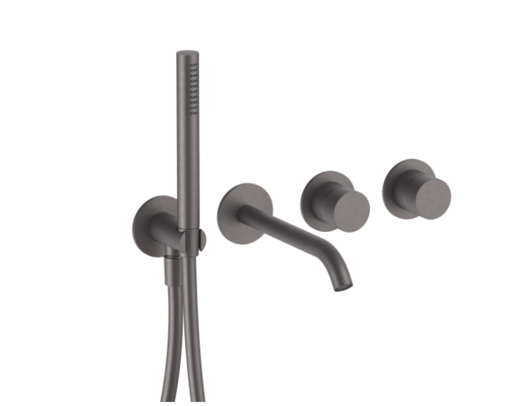 Смеситель для ванны и душа, Fantini, AA/27, тип открывания воды-однорычажный, тип регулирования воды-керамический картридж, монтаж-настенный встраиваемый, отверстия для монтажа-4, вынос излива, мм-200, ручной душ-в комплекте, внутренняя часть-необходимо заказать, цвет-Gun Metal Matt PVD Смеситель для ванны и душа, Fantini, AA/27, цвет-Gun Metal Matt PVD