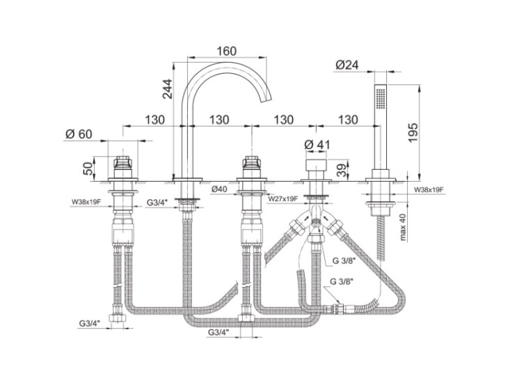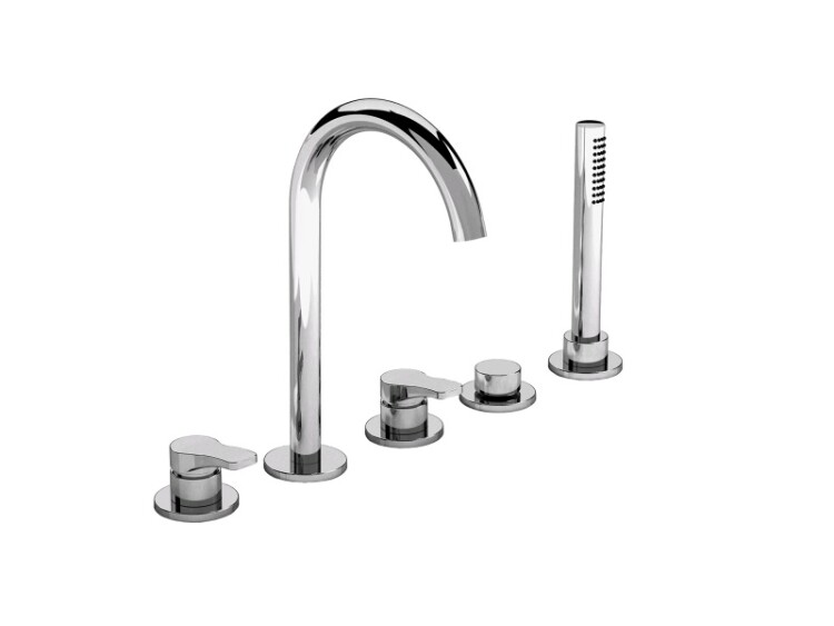 Смеситель для ванны и душа, Fantini, AL/23 Lissoni, тип открывания воды-двухрычажный, тип регулирования воды-керамический картридж, тип установки-на борт ванны, отверстия для монтажа-5, вынос излива, мм-160, цвет-хром, в комплекте-ручки, переключатель на 2 потока с кнопкой, ручная лейка FIT, гибкий шланг,мм-1500, впуски 3/4'', подводка Смеситель для ванны и душа, Fantini, AL/23 Lissoni, цвет-хром