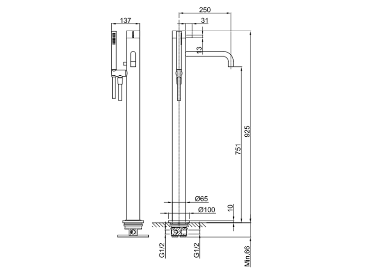 Смеситель для ванны и душа, Fantini, Fukasawa, тип открывания воды-однорычажный, тип установки-напольный, отверстия для монтажа-1, вынос излива, мм-250, внутренняя часть-необходимо заказать, цвет-хром Смеситель для ванны и душа, Fantini, Fukasawa, цвет-хром
