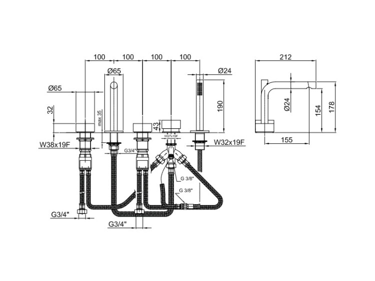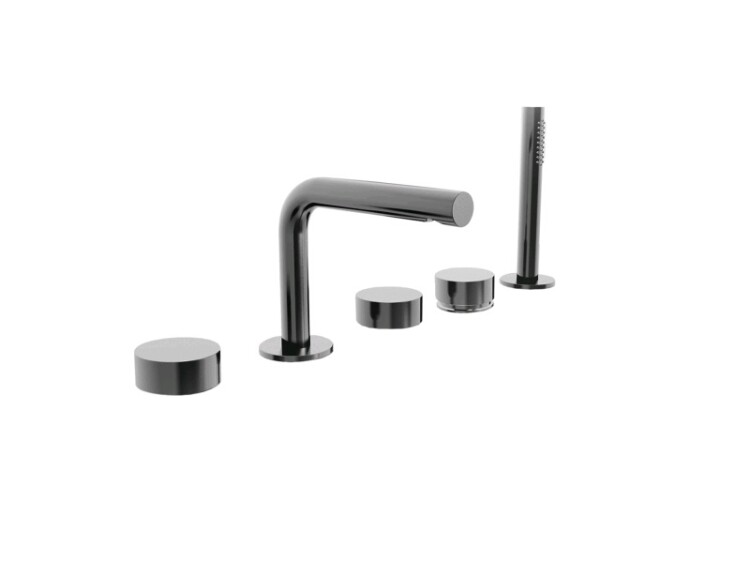 Смеситель для ванны и душа, Fantini, Fukasawa, тип открывания воды-двухвентильный, тип регулирования воды-керамический картридж, тип установки-на борт ванны, отверстия для монтажа-5, вынос излива, мм-155, цвет-матовая натуральная сталь, в комплекте-ручки, переключатель на 2 потока с кнопкой, ручная лейка FIT, гибкий шланг,мм-1500, впуски 3/4'', подводка Смеситель для ванны и душа, Fantini, Fukasawa, цвет-матовая натуральная сталь