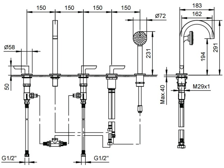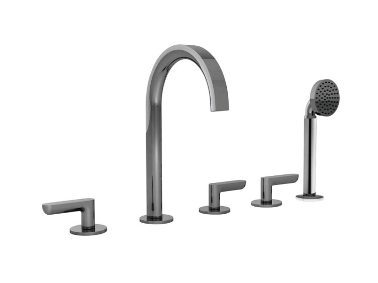 Смеситель для ванны и душа, Fantini, Icona Deco, тип открывания воды-двухрычажный, тип регулирования воды-керамический картридж, тип установки-на борт ванны, отверстия для монтажа-5, вынос излива, мм-162, , впуски 1/2", в комплекте-ручки, переключатель на 2 потока с поворотной кнопкой, ручная лейка, шланг-1500мм, подводка, цвет-хром Смеситель для ванны и душа, Fantini, Icona Deco, цвет-хром