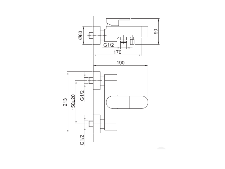 Смеситель для ванны и душа, Fantini, Mare, тип открывания воды-однорычажный, тип установки-настенный, отверстия для монтажа-2, вынос излива, мм-170, цвет-хром Смеситель для ванны и душа, Fantini, Mare, цвет-хром