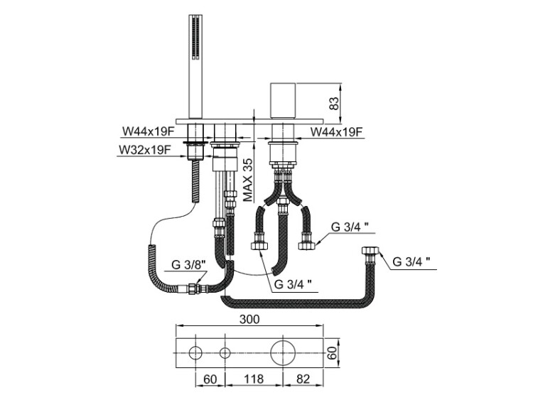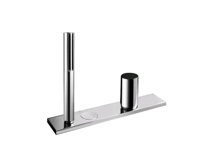 Смеситель для ванны и душа, Fantini, Milano, тип установки-на борт ванны, отверстия для монтажа-2, цвет-хром, в комплекте-ручка, переключатель на 2 потока с кнопкой, ручная лейка SUN, гибкий шланг,мм-1500, впуски 3/4'', подводка, без излива Смеситель для ванны и душа, Fantini, Milano, цвет-хром