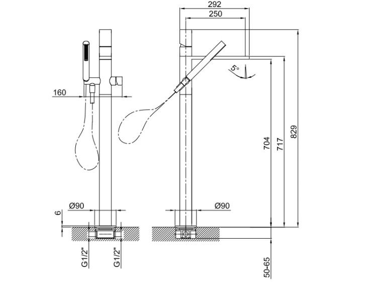 Смеситель для ванны и душа, Fantini, Milano, тип открывания воды-одновентильный, тип установки-напольный, отверстия для монтажа-1, вынос излива, мм-250, внутренняя часть-необходимо заказать, цвет-хром, в комплекте- ручка открывания/закрывания, регулирующая поток и температуру, ручная лейка SUN, держатель ручной лейки, гибкий шланг,мм-1250, ПВХ, впуски 1/2'' Смеситель для ванны и душа, Fantini, Milano, цвет-хром
