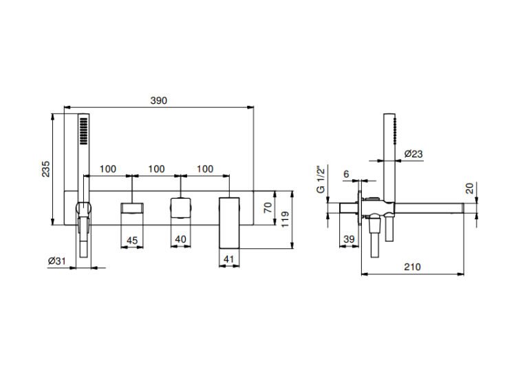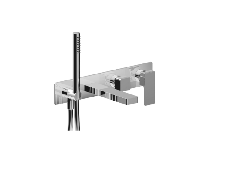 Смеситель для ванны и душа, Fantini, Mint, тип установки-встраиваемый, вынос излива, мм-200, внутренняя часть-необходимо заказать, цвет-хром, комплектация-ручка, переключатель на 2 потока с поворотной кнопкой, ручная лейка FIT, шланговое подсоединение с держателем для ручной лейки, гибкий шланг 150 см ПВХ, впуски 1/2'' Смеситель для ванны и душа, Fantini, Mint, цвет-хром