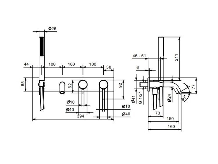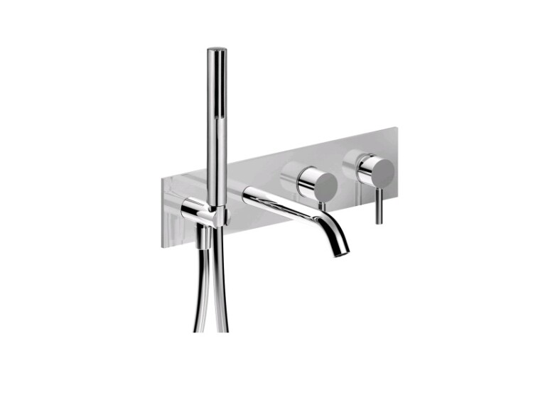 Смеситель для ванны и душа, Fantini, Nostromo, тип установки-встраиваемый, отверстия для монтажа-4, вынос излива, мм-150, внутренняя часть-необходимо заказать, в комплекте-ручка, переключатель на 2 потока с кнопкой, ручная лейка, форма лейки-цилиндрическая, гибкий шланг,мм-1500, впуски 1/2'', шланговое подсоединение с держателем для ручной лейки, цвет-черный матовый Смеситель для ванны и душа, Fantini, Nostromo, цвет-черный матовый