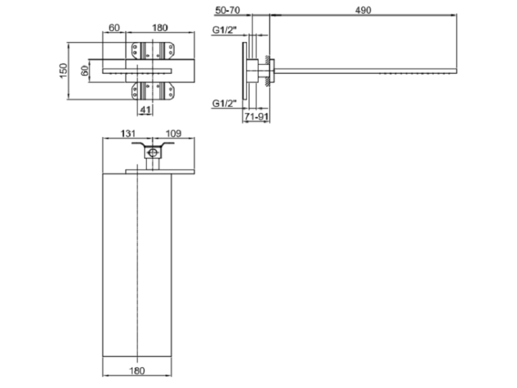 Верхний душ, Fantini, Milano, тип установки-настенный, глубина, мм-490, высота, мм-150, внутренняя часть-необходимо заказать, ограничитель потока воды до 17 л/мин при 3 бар, цвет-хром Верхний душ, Fantini, Milano, гв 490*150, цвет-хром