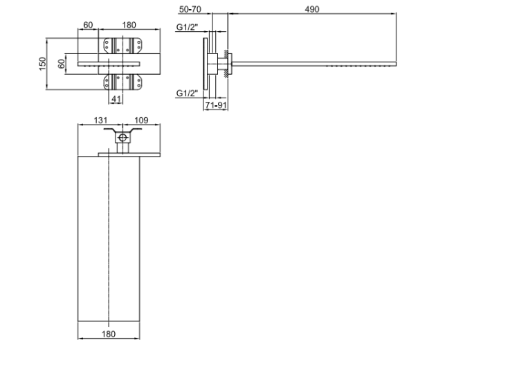 Верхний душ, Fantini, Milano, ширина, мм-180, глубина, мм-490, форма-прямоугольная, внутренняя часть-необходимо заказать, цвет-матовая натуральная сталь Верхний душ, Fantini, Milano, шг 180*490, цвет-матовая натуральная сталь