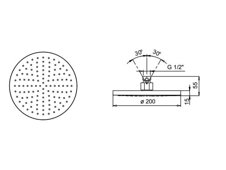 Верхний душ, Fantini, Mint, ширина, мм-200, глубина, мм-200, высота, мм-55, форма-круглая, цвет-белый матовый, материал-латунь, система от известкового налета, впуск 1/2'', обратный клапан Верхний душ, Fantini, Mint, шгв 200*200*55, цвет-белый матовый