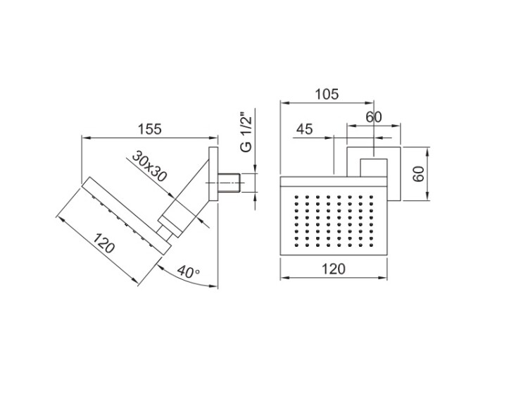 Верхний душ, Fantini, тип установки-настенный, ширина, мм-120, глубина, мм-155, форма-прямоугольная, цвет-хром, материал-нержавеющая сталь, регулируемый, система от известкового налета, впуск 1/2'', обратный клапан Верхний душ, Fantini, шг 120*155, цвет-хром