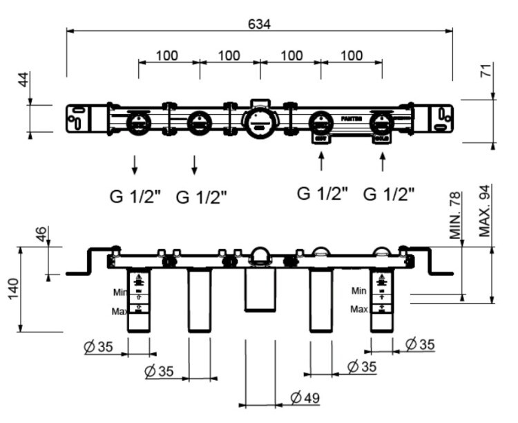 Внутренняя часть, Fantini, Venezia, назначение-смеситель для ванны и душа настенный встраиваемый с переключателем на 2 потока, стандарт подвода воды-1/2", не окрашен Внутренняя часть, Fantini, Venezia, назначение-смеситель для ванны и душа, не окрашен