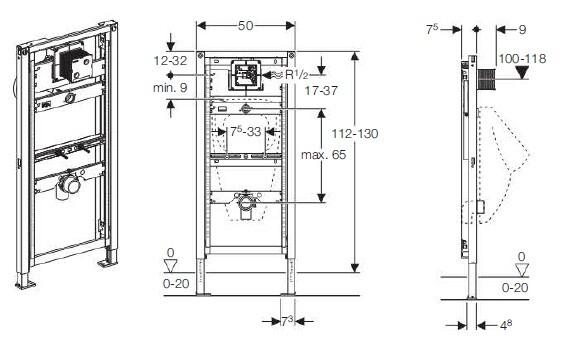 Инсталляция, Geberit, Duofix, назначение-для писсуара, ширина, мм-500, глубина, мм-75, высота, мм-1120, тип установки-встраиваемый, тип смыва-одинарный, клавиша смыва-необходимо заказать, тип управления-механический, крепёж-в комплекте Инсталляция для писсуара, Geberit, Duofix, шгв 500*75*1120