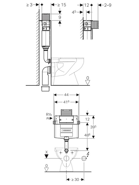 Смывной бачок скрытого монтажа, Geberit, Omega, назначение-для унитаза, ширина, мм-440, высота, мм-980, тип установки-встраиваемый Смывной бачок скрытого монтажа, Geberit, Omega, для унитаза, 440*980