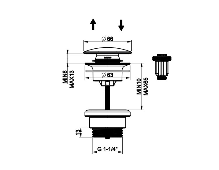 Донный клапан, Gessi, 1 1/4, диаметр, мм-66, для раковины, тип-автоматический, Stop&Go, форма крышки-круглая, цвет-Black Metal Brushed PVD, без слива-перелива Донный клапан, Gessi, 1 1/4, диаметр, мм-66, для раковины, цвет-Black Metal Brushed PVD