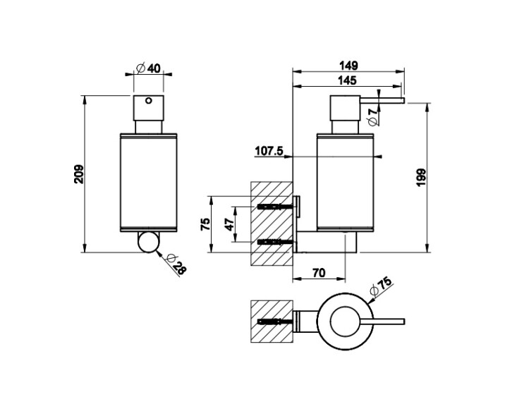 Дозатор для жидкого мыла, Gessi, 316, механический (нажимной), ширина, мм-75, глубина, мм-149, высота, мм-209, тип установки-настенный, материал колбы-композит неолит, цвет колбы-белый, цвет дозатора-Steel Brushed Дозатор для жидкого мыла, Gessi, 316, шгв 75*149*209, цвет дозатора-Steel Brushed